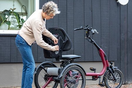 Wie der Name des Easy Rider Compact schon sagt, handelt es sich um ein kompaktes, Sitzdreirad, das neu im Sortiment von Van Raam eingeführt wird. Dies spiegelt sich sowohl in den Abmessungen als auch im Design des Fahrrades wieder.