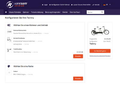 Im Konfigurator können Sie sehen, welche Optionen für jedes Fahrrad zur Verfügung stehen also auch welches Fahrrad in einer Teilbaren Version verfügbar ist. Hier können Sie anschießend Ihr eigenes Fahrrad individuell zusammenstellen. Möchten Sie wissen, was es für Ihr vanRaam Fahrrad gibt? Klicken Sie auf die untenstehenden Button, um zum Konfigurator zu gelangen.