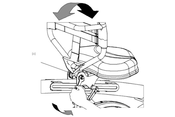 Lösen Sie dazu die Mutter mit einige Umdrehungen, verwenden Sie dazu einen Schraubenschlüssel. Bringen Sie dann die Rückenlehne in die gewünschte Position und ziehen Sie die Mutter wieder fest.