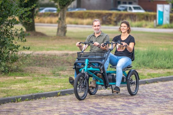 Das Fahrrad mit zwei Sitzen Fun2Go ist ein Fahrrad für zwei Personen, wobei die beiden Sitze nebeneinander angeordnet sind. Eine Person steuert und beide können in die Pedale treten. Der Fahrer hat die volle Kontrolle über das Fahrrad, wodurch sich dieses Fahrrad sehr gut für das Radfahren mit Personen eignet, die nicht (mehr) selbstständig am Verkehr teilnehmen können. Ein Beifahrer kann bereits einsteigen, wenn er sich setzen kann, muss es aber nicht.