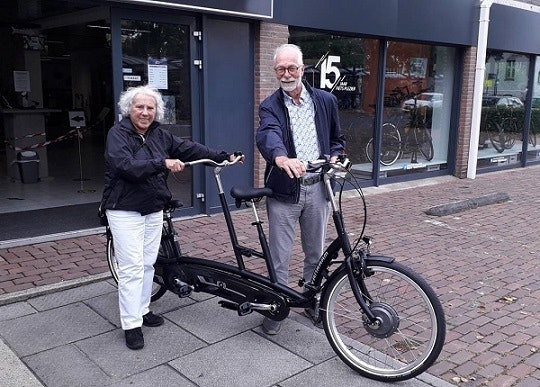 ,,Wir haben Van Raam über das Internet gefunden. Wir haben nach spezifischen Anpassungen für Fahrräder gesucht. Dann fuhren wir zu Van Raams Standort für eine Probefahrt. Es hat uns gefallen und wir haben uns sofort dafür entschieden. Als nächstes bestellten wir das elektrische Twinny-Tandem bei Van Raam-Händler Rob's Tweewielers in Boxmeer. Das elektrische Tandem haben wir selbst finanziert. Im September 2021 haben wir das Tandem erhalten und es gefällt uns sehr gut. Auch der Kontakt mit dem Händler ist sehr angenehm und engagiert. Er hat auch unseren Fahrradträger angepasst, damit wir den Twinny mitnehmen können."