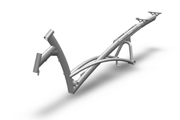 A bicycle frame is the supporting structure of a bicycle. It carries the weight of the rider and passes it on to the wheels. The frame is subject to driving, braking and steering forces as well as external conditions. All other components of the bicycle are attached to a bicycle frame, which are needed for steering, drive and other functions of the bicycle.