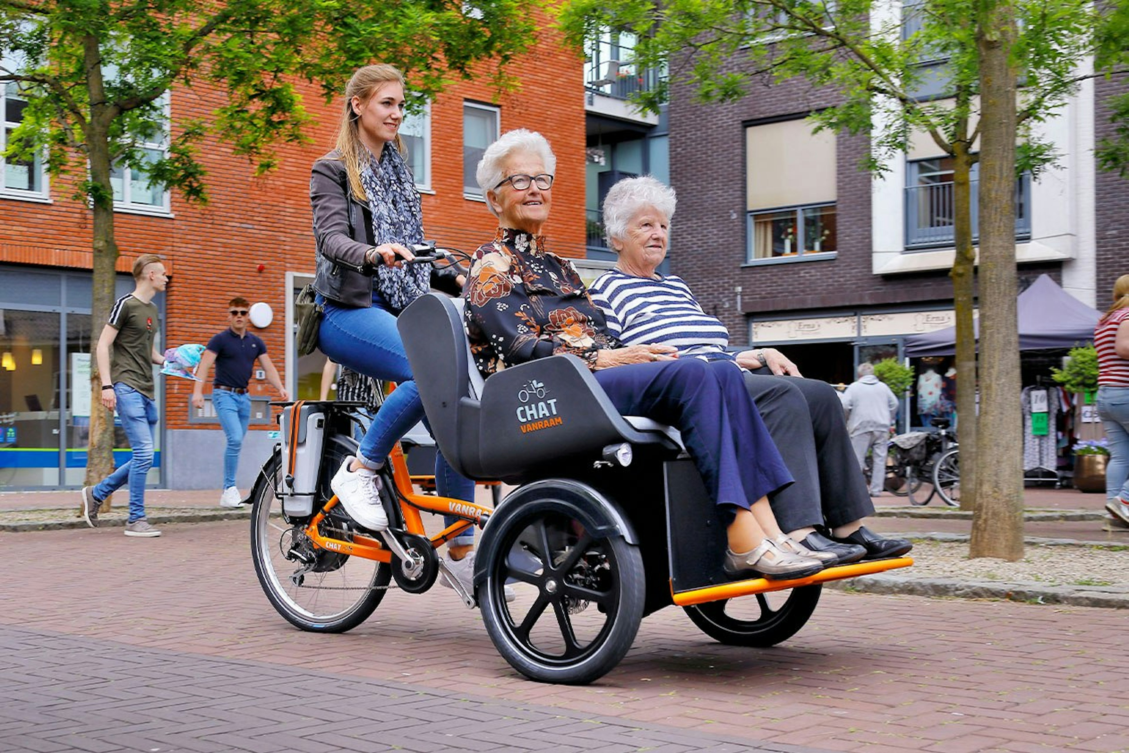 Besides the fact that this rickshaw bicycle offers a solution for the elderly, the Chat is also suitable for people who want to go on a guided tour, but also for care institutions, families and holiday parks.
