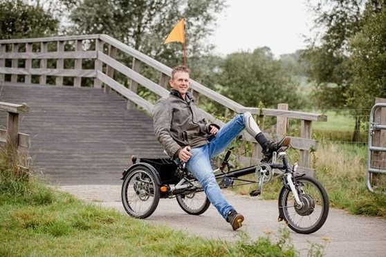 "A bright green color, a platform for my prosthesis, 8 gears and a handlebar under the saddle that I can operate with one hand. After a while, direction indicators and pedal assistance were added, so that I can still cycle with my limited energy for a reasonable length of time." Johan's experience with the Easy Sport is positive: "To me, a bike means freedom, the wind in my hair and being outside. And shopping is fine. Take your mind off things. And if something is broken, an appointment is scheduled and the Easy Sport is repaired."