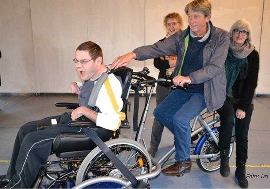 De Rolstoeltransportfiets is ontwikkeld om mensen, die in hun eigen rolstoel blijven zitten, per fiets te vervoeren. Er is geen transfer nodig tussen de rolstoel en de fiets. De kantelbare oprijplaat maakt het mogelijk de handbewogen rolstoel eenvoudig op de rolstoelfiets te krijgen. De Veloplus rolstoelfiets is met name erg eenvoudig voor het gebruik van verschillende mensen omdat de eigen rolstoel gebruikt kan worden. Hierdoor kunnen extra veel huurders plezier hebben van de fiets.