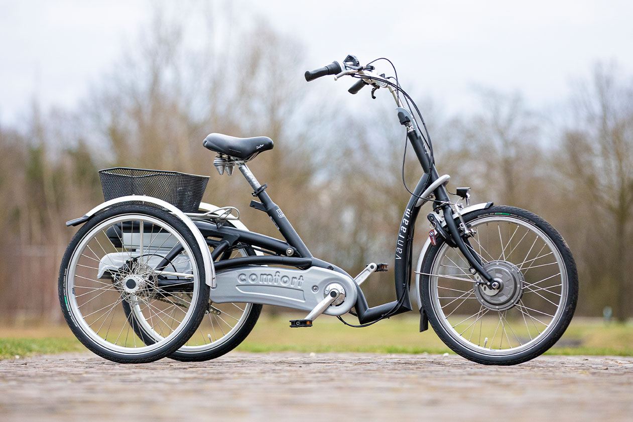 Moderne lage instap driewieler: een variant op de traditionele driewielfiets. De Maxi Comfort heeft een lage ruime instap en een andere zitpositie. Je zit niet boven de trapas maar er iets achter. Je zitpositie is hierdoor lager, je kunt altijd met beide benen op de grond komen en toch een optimale kniebeweging maken. Bij deze variant hoef je je been niet zover omhoog te tillen bij het opstappen maar kun je de fiets onder je door trekken en gaan zitten. Doordat het zwaartepunt lager ligt voelt deze driewieler ook comfortabeler aan.Â
