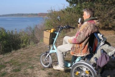 Toen ik in 2000 MS* bleek te hebben, had ik al enkele jaren een elektrische tweewielfiets. Maar omdat mijn kracht en energie steeds verder afnamen, werd het fietsen onzeker en wat onveilig. Het werd moeilijk om op te stappen, weg te komen bij een stoplicht of plotseling te remmen. En dit alles begon in het verkeer veel inspanning te vragen. Met een flinke wind werd ik bang. Bruggetjes en duinen kwam ik niet meer op.